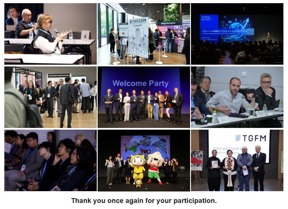 Your honest feedback and comments will help us make TIFFCOM even better in the future. We would greatly appreciate your cooperation.